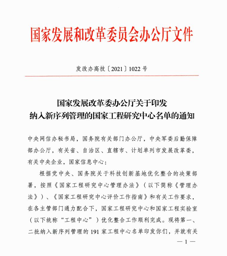 2021年12月20日,國家發(fā)展和改革委員會發(fā)布了納入新序列管理的國家工程研究中心名單(發(fā)改辦高技﹝2021﹞1022號),依托中國農(nóng)業(yè)科學(xué)院哈爾濱獸醫(yī)研究所建設(shè)的“動物用生物制品國家工程研究中心”(以下簡稱“工程中心”)通過了國家發(fā)展和改革委員會的優(yōu)化整合評價,正式納入國家工程研究中心新序列管理。據(jù)悉,此次優(yōu)化整合評價通過率約54.57%。